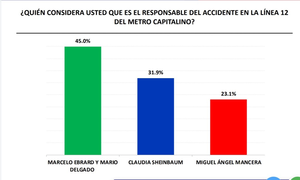 El 45% de los encuestados considera a Ebrard como el responsable mientras que el 31.9% a Claudia Sheinbaum y el 23.1% a Miguel Angel Mancera.