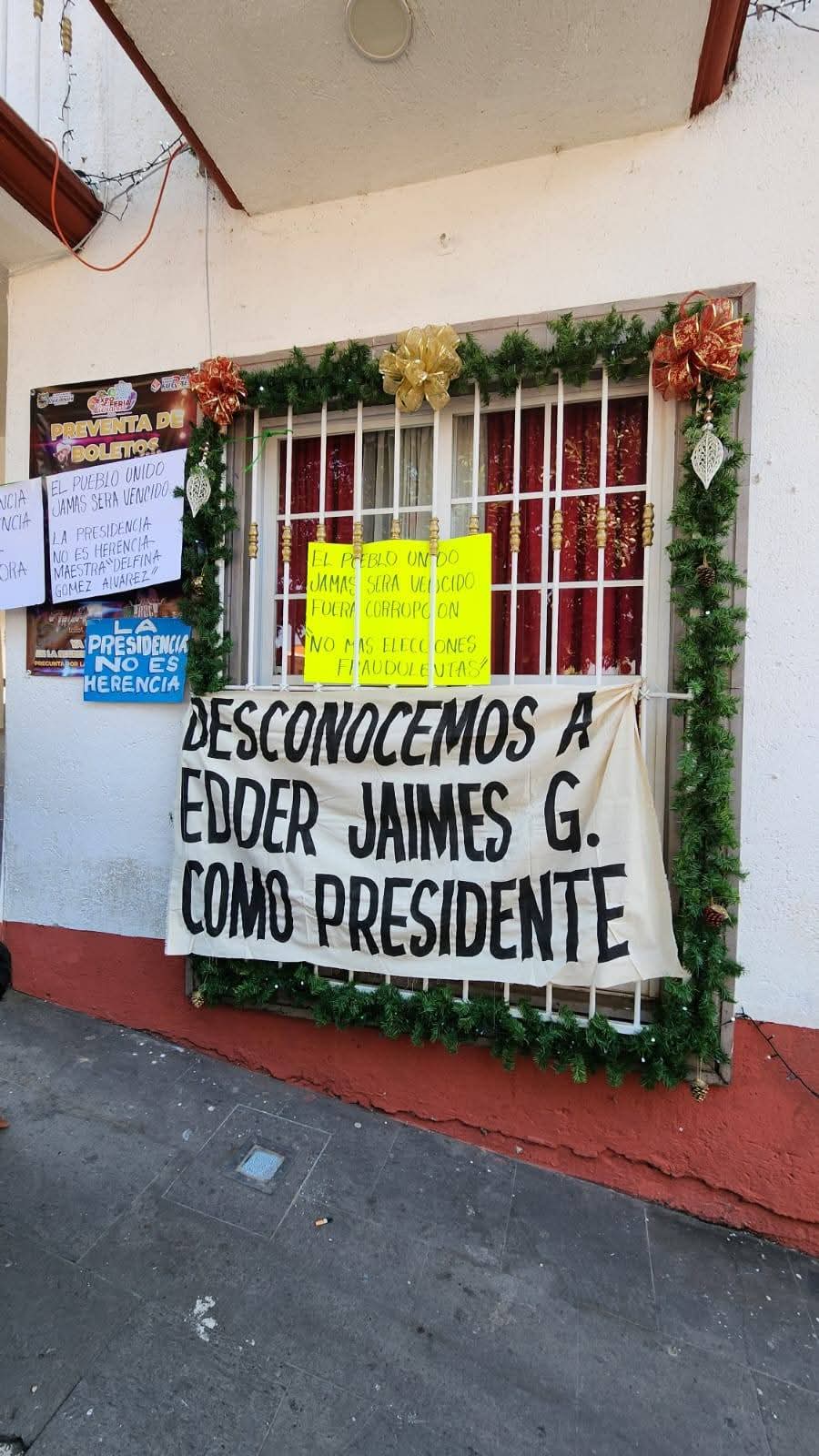 Con cadenas, candados y mantas con consignas, las y los inconformes bloquearon el edificio municipal. Acusan que, aunque los resultados preliminares favorecían a otro candidato, el conteo final otorgó la victoria a Jaimes Garduño, candidato de la coalición Morena-PT-PVEM. El Tribunal Electoral del Estado de México (TEEM) confirmó su triunfo, lo que ha generado descontento entre los pobladores.